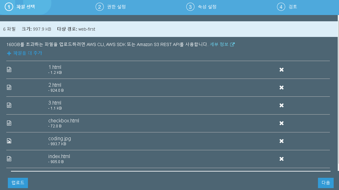 사용되는 파일을 버킷에 쭉 드래그 해주세요.