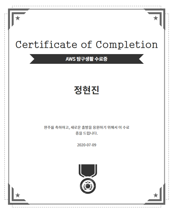 AWS 탐구생활 수료증 본문