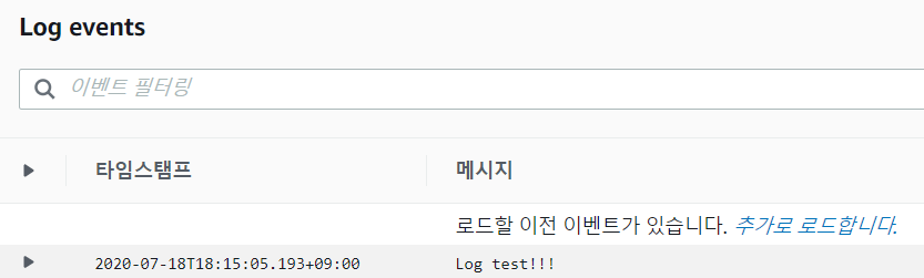 CloudWatch에 확인하고자 하는 Log가 정상적으로 수집되었음을 알 수 있습니다!