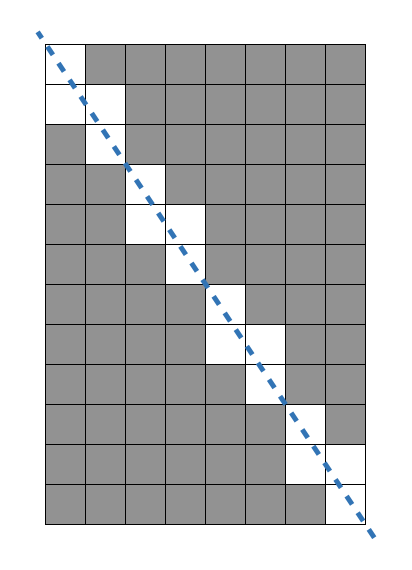 가로가 8, 세로가 12인 직사각형을 대각선 방향으로 자르면 총 16개 정사각형을 사용할 수 없게 됩니다. 원래 직사각형에서는 96개의 정사각형을 만들 수 있었으므로, 96 - 16 = 80 을 반환합니다.