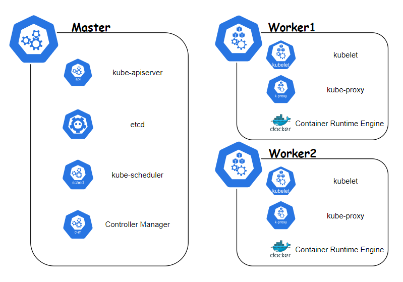 마스터 노드는 'etcd, Controller Manager, kube-apiserver, kube-scheduler'으로 이루어져 있어요.