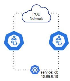 예를 들어, 첫 번째 노드에 웹 어플리케이션을, 두 번째 노드에 데이터 베이스를 배포했을 때 웹 어플리케이션은 데이터베이스 POD의 IP를 이용해 데이터베이스에 도달할 수 있습니다. 하지만 데이터베이스의 IP가 항상 동일하게 유지되는 보장은 안되죠.
