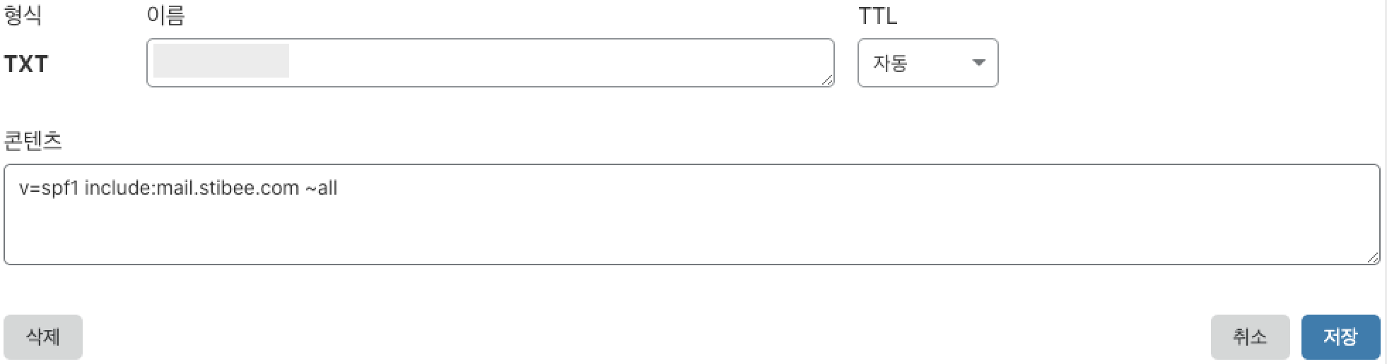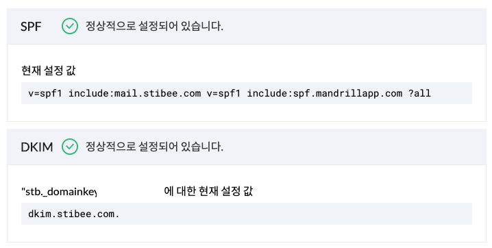 수정 레코드v=spf1 include:mail.stibee.com v=spf1 include:spf.mandrillapp.com ?all