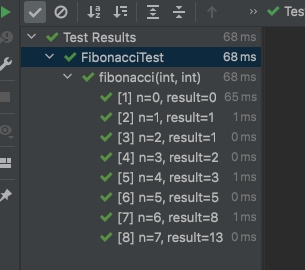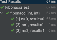 간단하게, csv source 값들 중 각 따옴표 내의 값들이 n, result 값으로 들어와 테스트 메소드가 반복 호출됩니다.